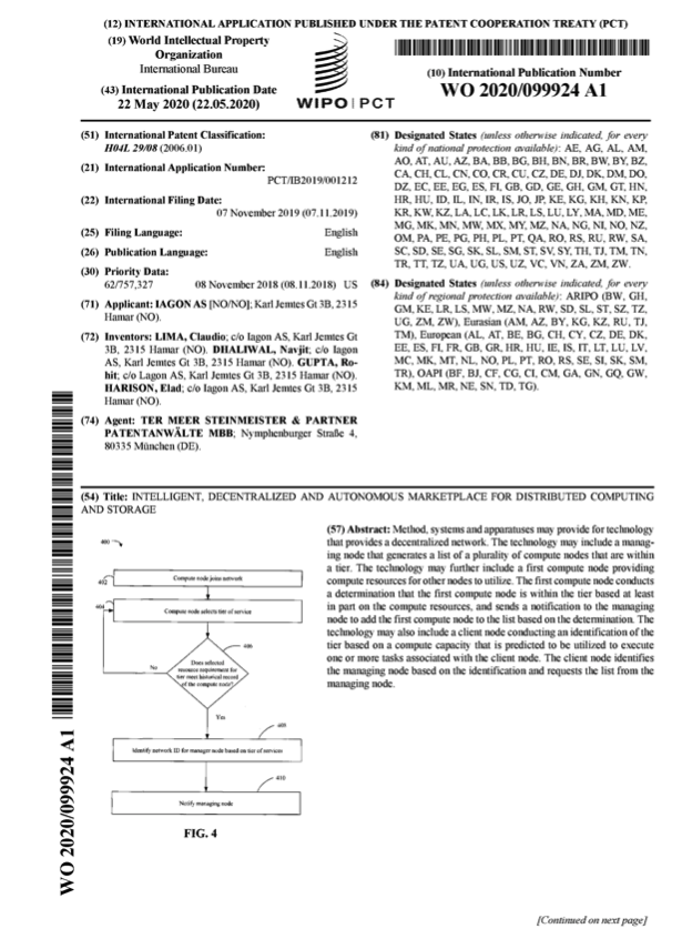 We are very proud to announce a great achievement for the IAGON project and the team behind the platform, as our patent has been officially published. The patent is officially published.